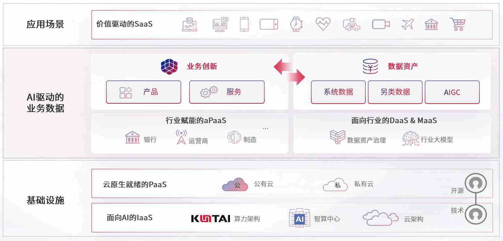 数字时代,,,,围绕企业数字化转型的关键要素,,,老哥稳数码开创性的提出数云融合战略和技术体系框架,,,,着力在云原生、、数字原生、、、AI原生和信创产业上架构产品和服务能力,,,,为处在不同数字化转型阶段的快消零售、、、汽车、、、、金融、、、医疗、、、政企、、教育、、、运营商等行业客户提供泛在的敏捷IT能力和融合的数据驱动能力,,,构建跨界融合创新的数字业务场景和新业务模式,,,助力企业级客户建立面向未来的核心能力和竞争优势,,,,全面推动社会的数字化、、、、智能化转型升级。。。
